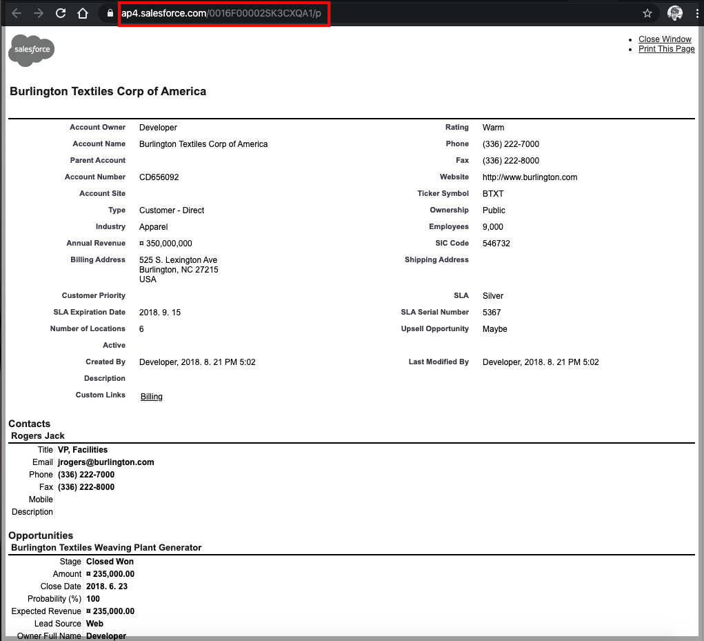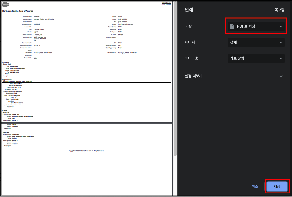 모든 접근 가능한 레코드 Id를 알면 Printable View 화면을 볼 수 있습니다.