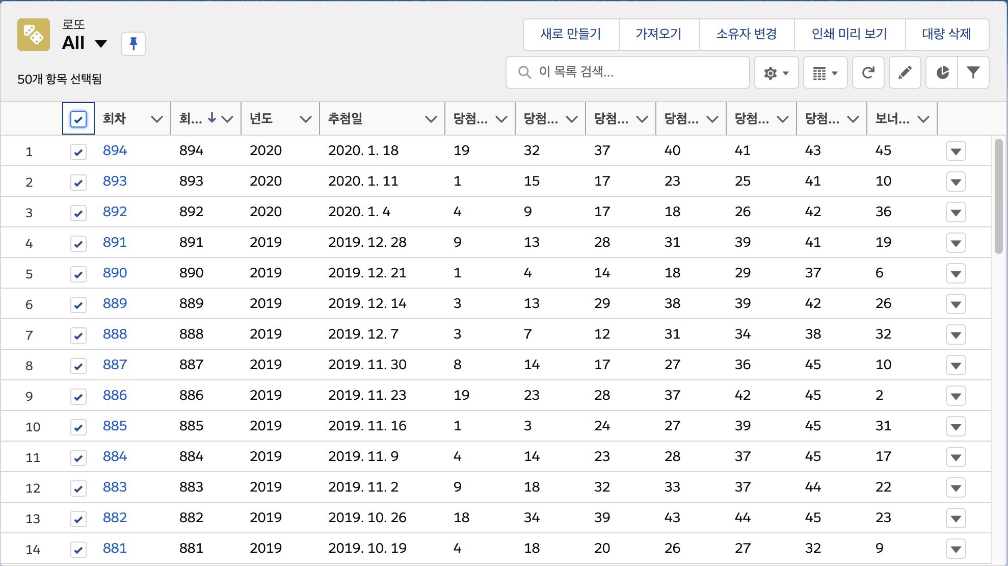 여기서는 Lotto__c 라는 Custom Object를 예제로 사용하였습니다.