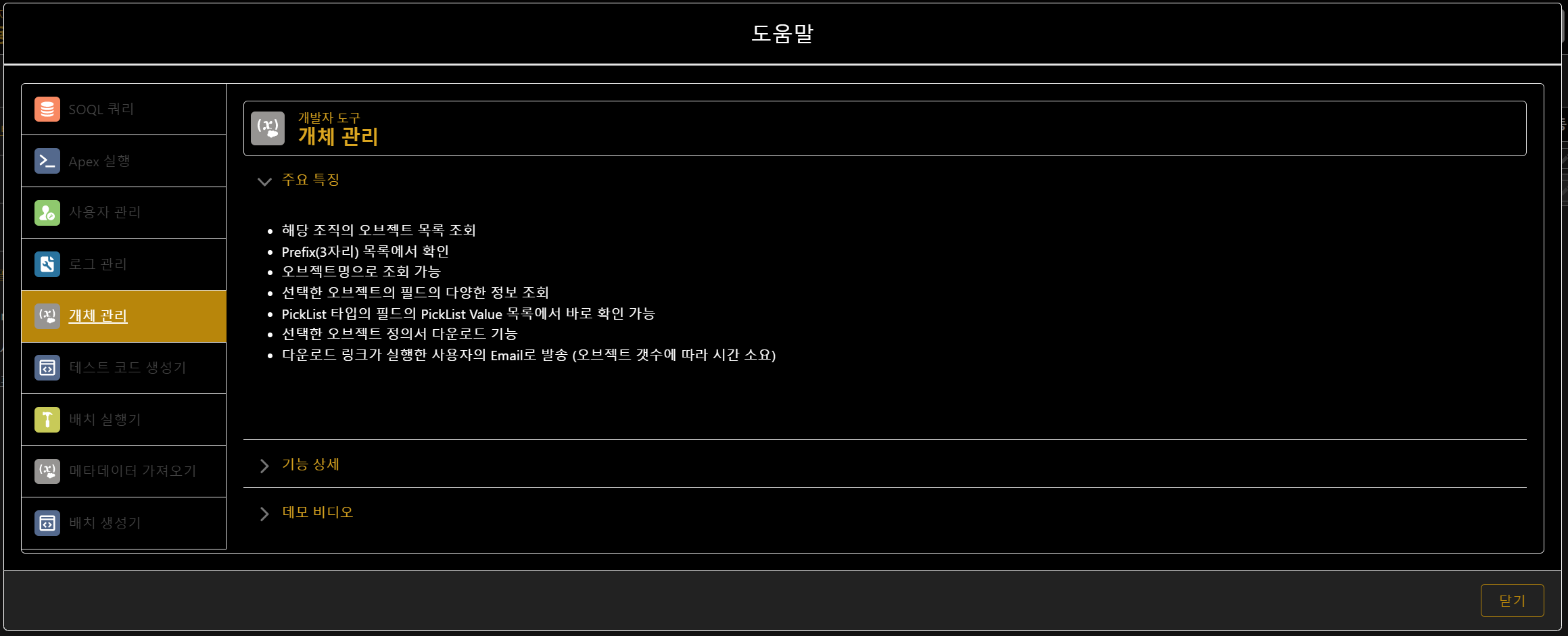 - 선택한 오브젝트 정의서 다운로드 기능