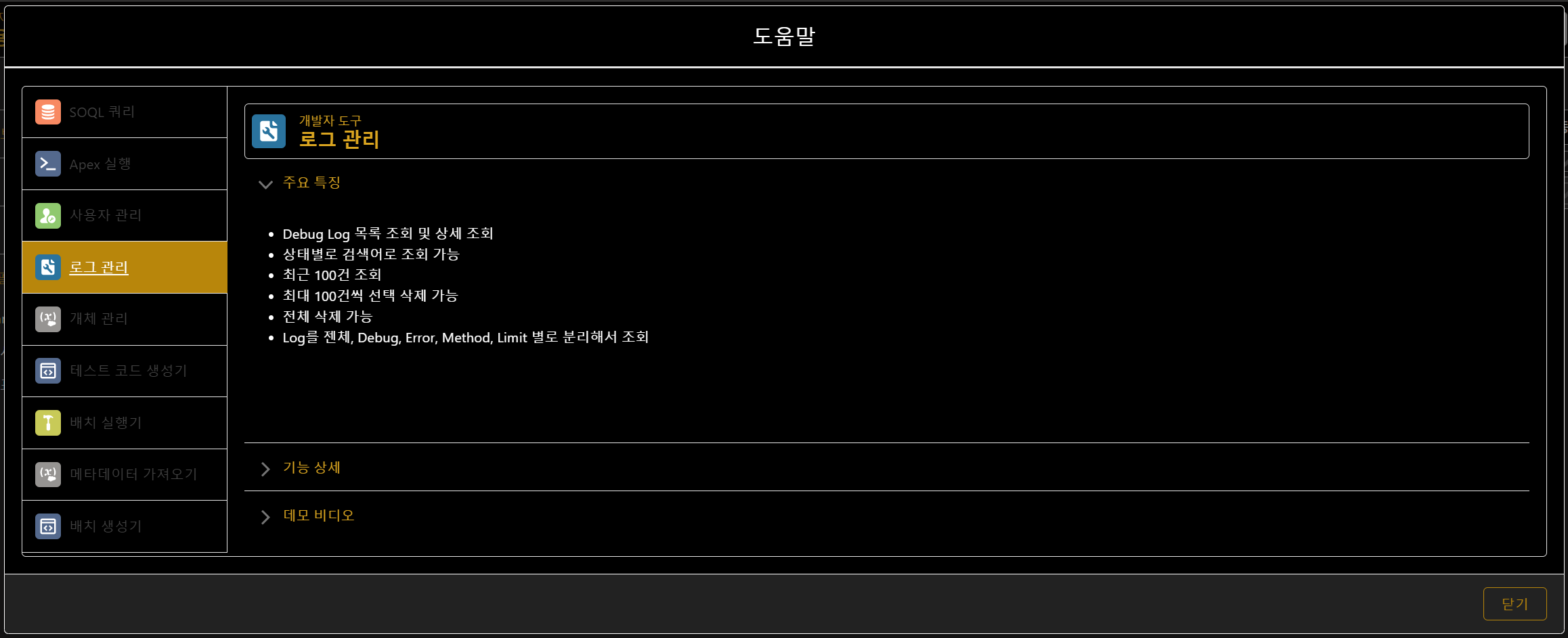 - Debug Log 목록 조회 및 상세 조회