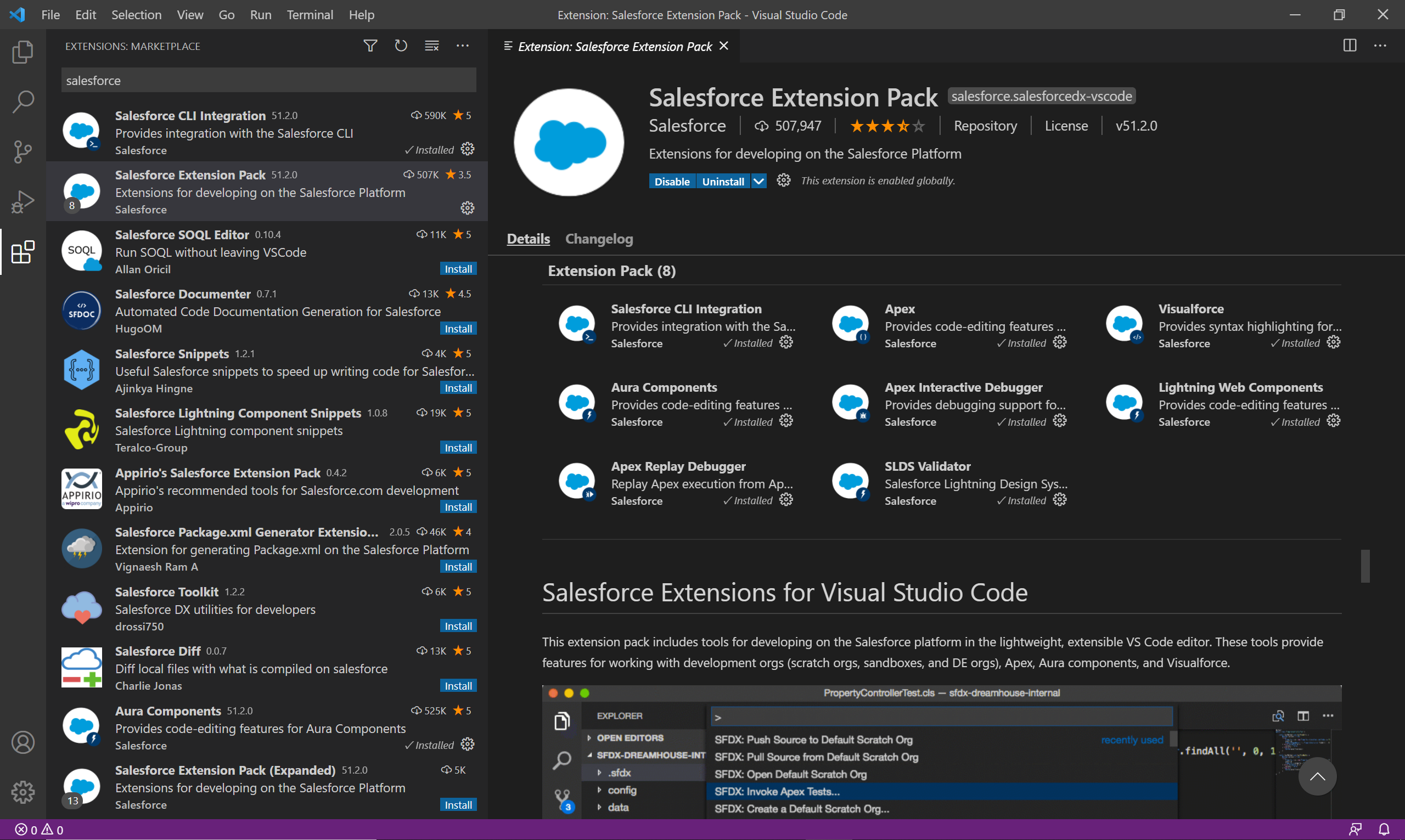 지금까지 Visaul Studio Code에 Salesforce Extension Pack 설치 과정을 살펴봤습니다.