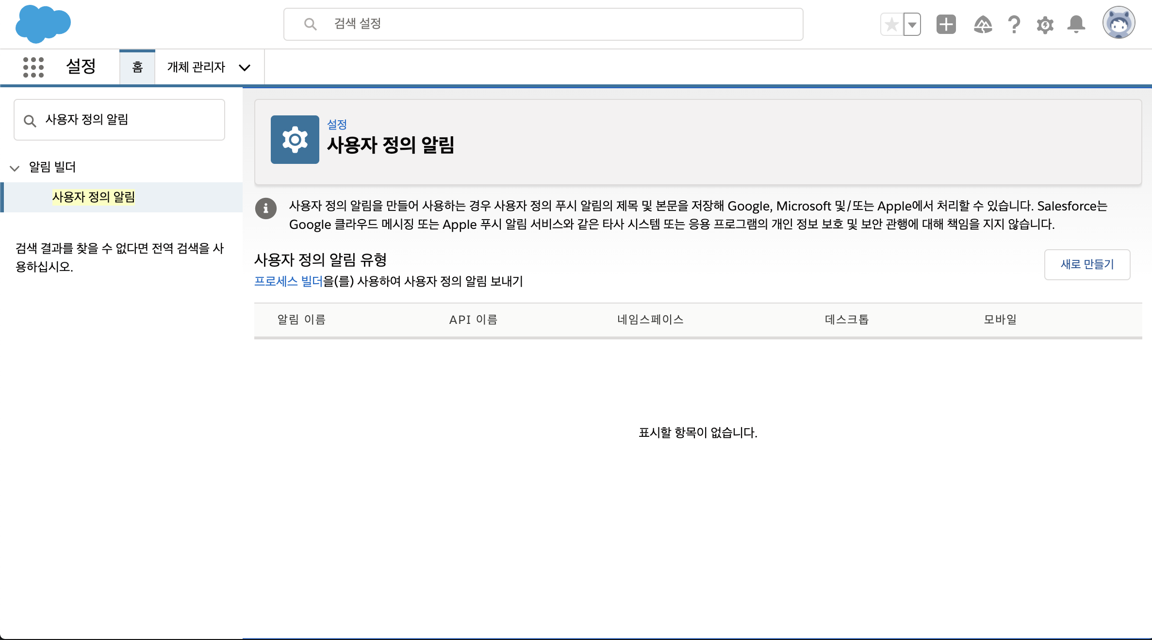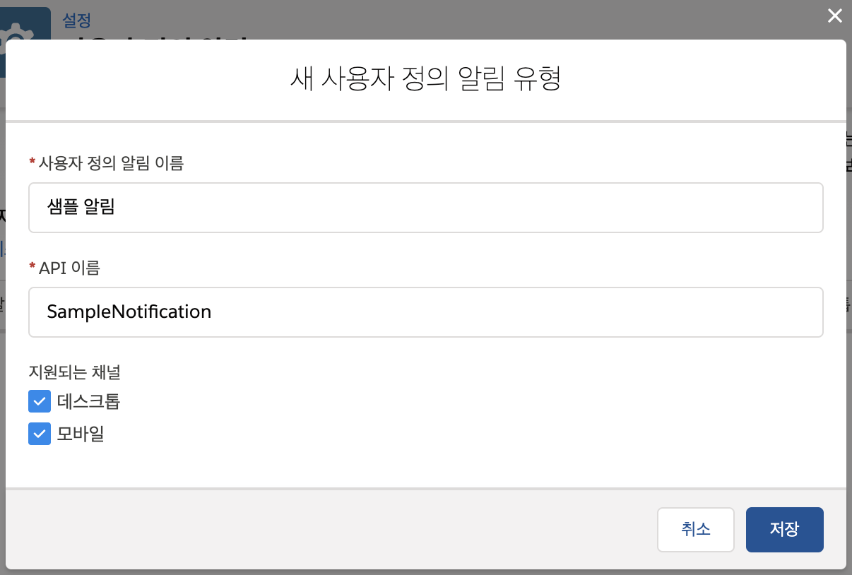 세일즈포스 사용자 정의 알림 (Salesforce Custom Notification) 설정 및 구현